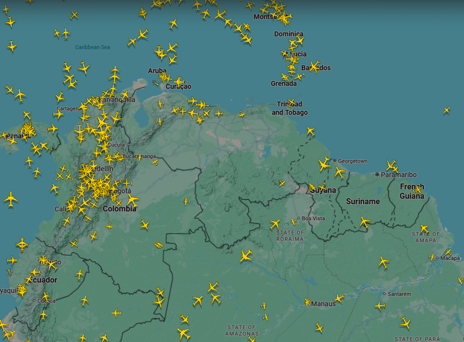 Apesar de o presidente dos EUA não ter autoridade legal para bloquear voos em outro país, a simples ameaça já causou um efeito imediato: a quantidade de voos sobre a Venezuela caiu drasticamente. Dados do sistema Flight Radar, que monitora aeronaves em tempo real, mostraram pouquíssimos aviões circulando pelo espaço aéreo venezuelano ao longo do sábado.